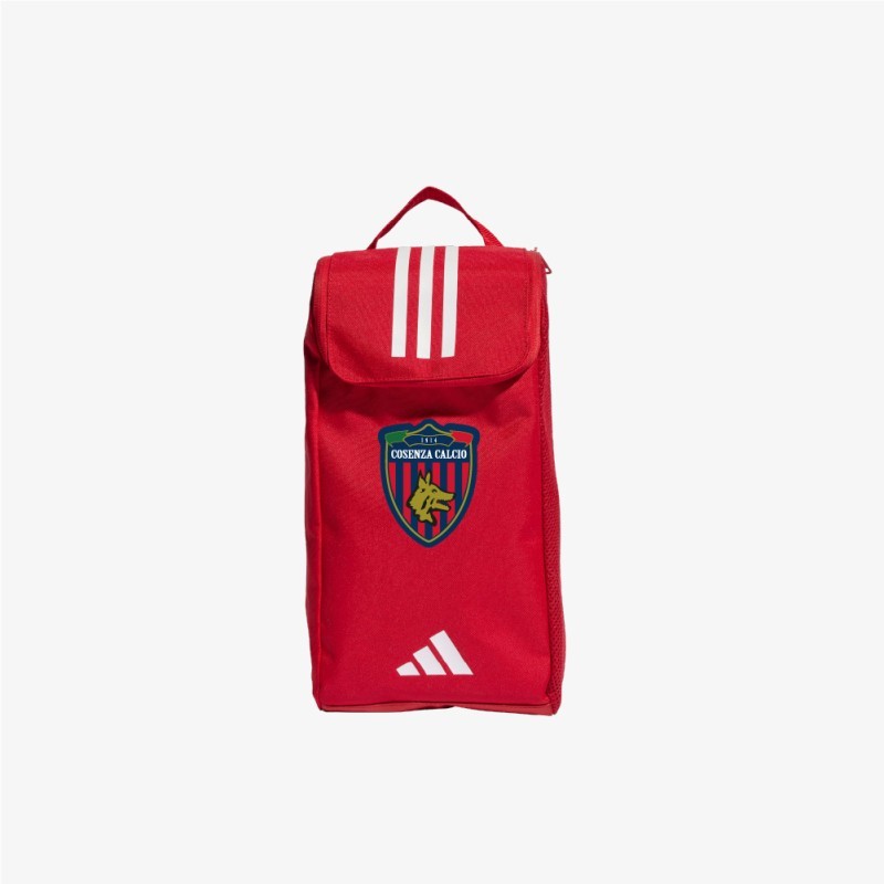 Portascarpe Red Cosenza Calcio 2025. Rosso come la passione che ti spinge a dare sempre il massimo, il portascarpe ufficiale del Cosenza Calcio firmato Adidas custodisce con orgoglio la tua grinta rossoblù, ovunque tu vada.
