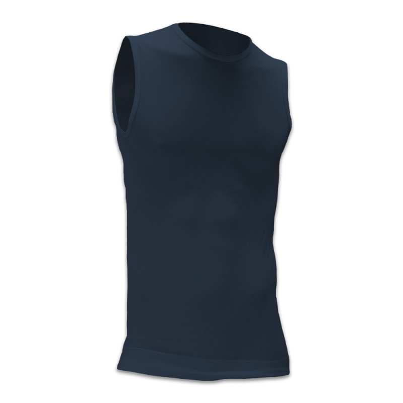 Maglia Underwear, smanicata, ideata per l’allenamento; tessuto elastico, leggero e resistente; decorato da tessiture intarsiate a rilievo.